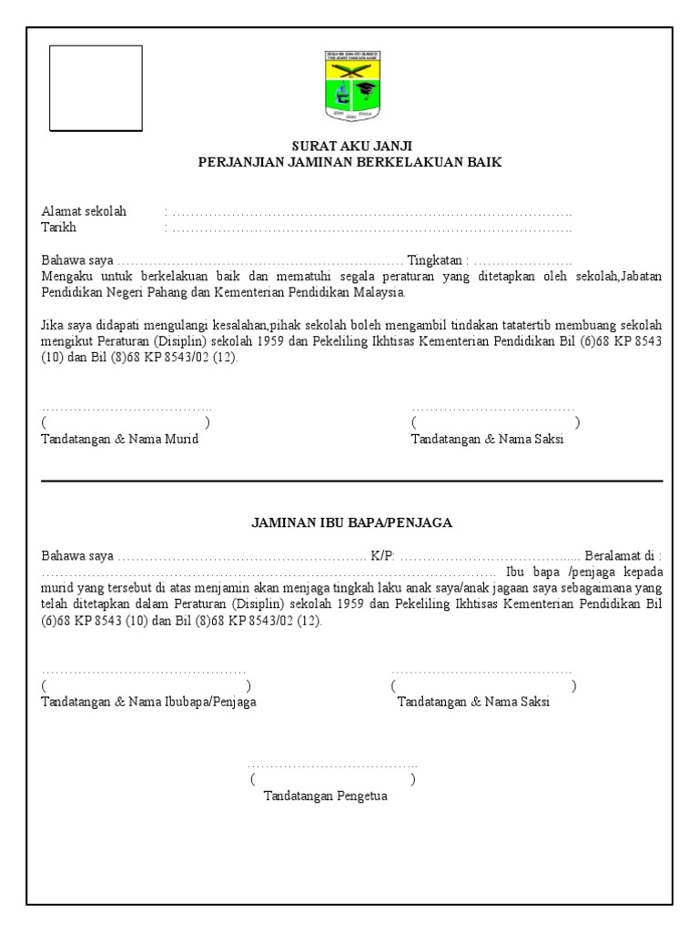 Contoh Surat Aku Janji Pelajar Sekolah Menengah Otosection